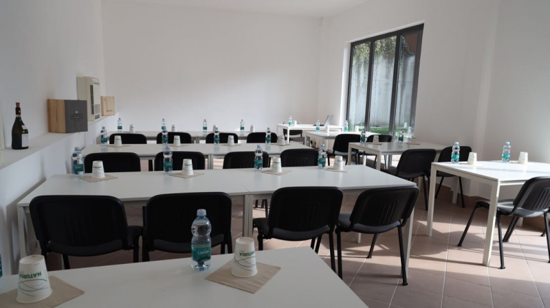 Caratterizzata da luci neutre per non compromettere la degustazione del vino durante le attività, ambienti dalle tinte bianche, uno stile industrial, moderno e green con arredamenti e complementi che donano un tocco personalizzato all’ambiente.