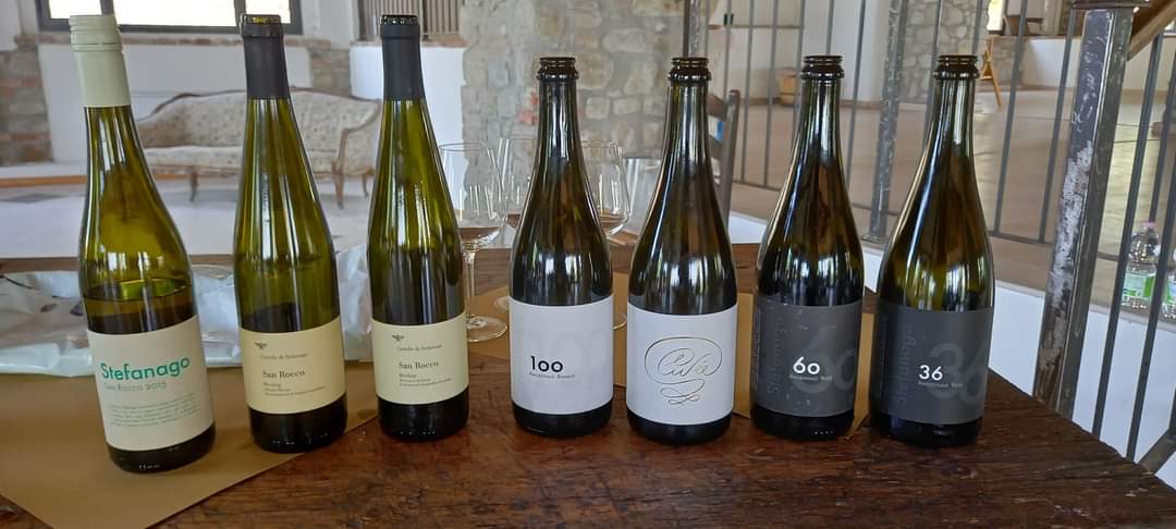 La proprietà è di 140 ettari attorno al Castello, tra 350 e 500 metri circa di altitudine, in un unico corpo; i 20 ettari di vigneto incarnano la centralità del progetto e convogliano le forze di Antonio e Giacomo, il quale prosegue nel racconto e ci spiega come diversità, passione, curiosità e sperimentazione siano concetti forti e radicati per loro e che, oltre ai vini prodotti a marchio "Castello di Stefanago", hanno creato la linea "Stuvenagh", che rappresenta la particolarità di una finestra ancora più aperta sulla libertà e sulla sperimentazione.
