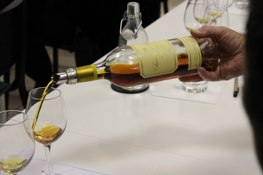 Dissoluzione ossidativa dei pigmenti coloranti presenti nella buccia, diminuzione dello zucchero di circa un terzo, diminuzione dell’acido tartarico di circa un sesto, del malico di circa un terzo e del citrico di circa un quarto, maggiore presenza di glicerina nonché formazione di numerose e identificative molecole odorose: questi sono solo alcuni degli effetti che la Botrytis ha sugli acini dei Sauternes ma per notare meglio quelle che possono essere le differenze e le caratteristiche del suo passaggio si passa a quella che è la parte più attesa della serata: la degustazione.