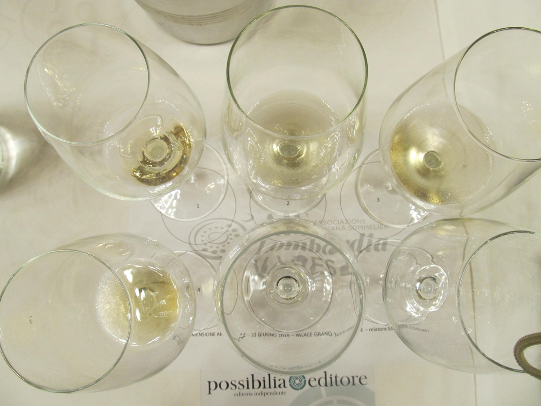 Al palato si percepiscono freschezze diverse, con salivazioni più o meno prolungate e profumi che si amplificano nel cavo orale e che confermano la complessità e la qualità dei prodotti. Come consigliato dal relatore non abbiamo valutato le bollicine poiché soggette a troppe variabili e non fondamentali per la valutazione complessiva.