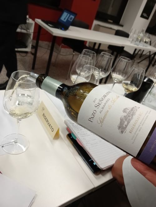 Il nome stesso, Pazo de Señorans, significa “Palazzo dei Signori”, e la cantina è una delle più nobili interpreti dell’Albariño. La Selección de Añada è un vino simbolo, considerato da molti il miglior bianco di Spagna. Si tratta di un vino prodotto esclusivamente nelle annate migliori, da una sola vigna, Bancales, di 45-50 anni, vendemmiata tardivamente. La fermentazione avviene solo in acciaio, e il vino matura sui lieviti per oltre 30 mesi, prima di un affinamento in bottiglia di almeno un anno. L’uscita sul mercato avviene dopo sette o otto anni dalla vendemmia: l’annata in degustazione, la 2015, è dunque la più recente disponibile. La produzione è limitata a circa 16.000 bottiglie. Non fa la malolattica, ma il lungo contatto con le fecce fini regala complessità, morbidezza e profondità.