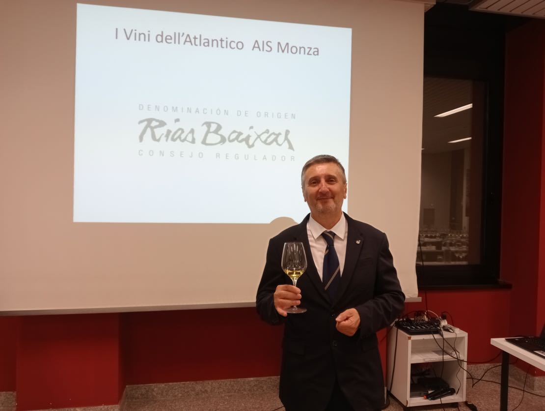 Bisogna ammetterlo, Antonio Erba ci ha sorpresi e ammaliati regalandoci una serata dolce e nostalgica, divertente, snella, interessante e buona! Una serata che è trascorsa come ascoltando il rumore delle onde, con piacere, rilassatezza, e con un’ironia che più volte nel tempo trascorso insieme ha scatenato plauso e sincero divertimento. La zona che ha scelto di farci conoscere e degustare è quella di Rías Baixas, nella Galizia spagnola, e il vitigno principe attraverso il quale ci ha condotti su quelle maestose rive d’oceano è l’albariño. La serata si è aperta con le note di una canzone, Memoria da noite, brano di Luar na Lubre, e con una sequenza di immagini che ci ha subito portati via da Monza e immersi nel racconto.