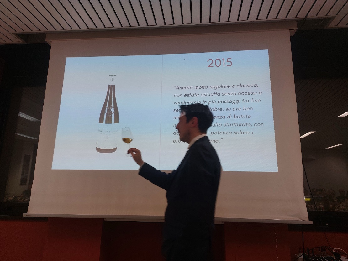 “Annata regolare e classica, con estate asciutta senza eccessi e vendemmia in più passaggi tra fine settembre e ottobre, uve ben mature con presenza di botrite nobile”.