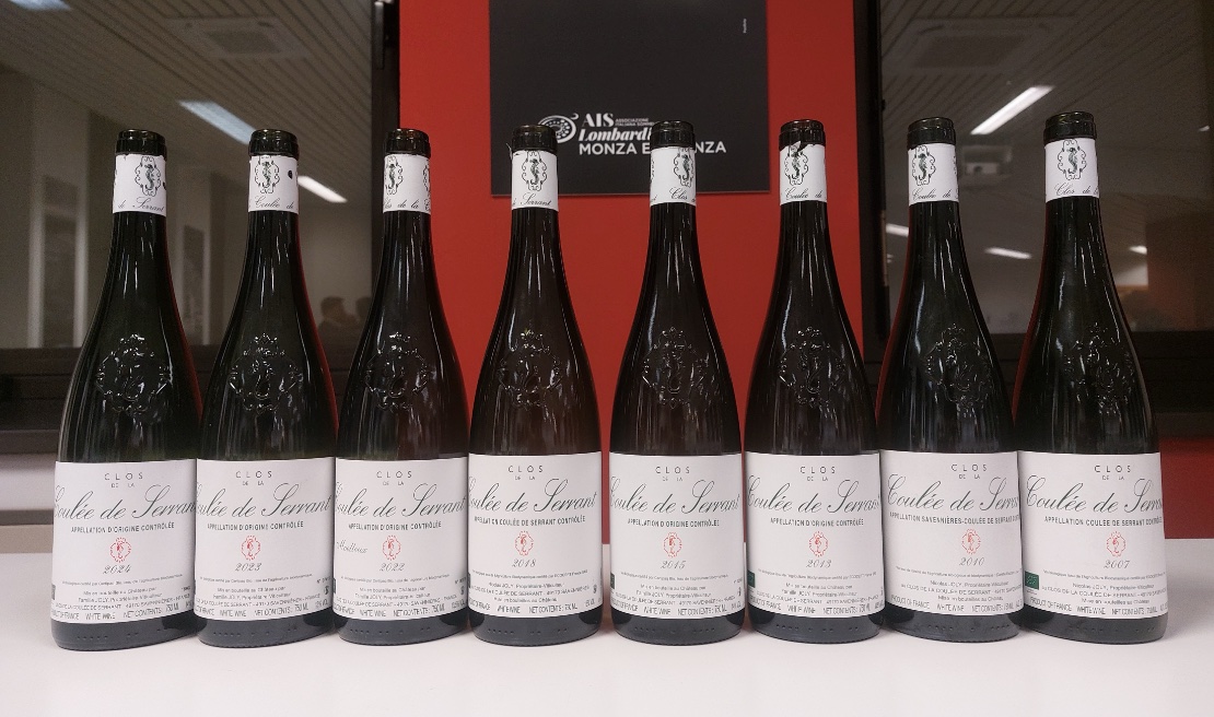 Quando Nicolas Joly ci ha salutati, fra applausi e ringraziamenti della delegazione di AIS Monza e Brianza, il video si è spento e i calici hanno preso le sembianze di chenin blanc o, per meglio dire, di quella purezza divenuta il simbolo del luogo e, di riflesso, del suo produttore. È stato il sommelier Altai Garin a guidarci abilmente in questa straordinaria verticale di otto annate di Clos de la Coulée de Serrant (100% chenin blanc).