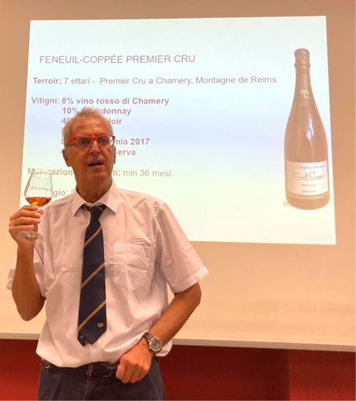 Artigiani quindi, prima che industriali, vivono e lavorano in vigne spesso minuscole, legati profondamente alla terra e al microclima di ciascun cru. Scovarli è un’esperienza a sé: bisogna recarsi nei villaggi, visitare le cantine di famiglia, percorrere le colline dell’Aube o della Montagne de Reims. È necessario parlare, assaggiare, osservare le differenze tra un terreno di craie e una parcella di sabbia, tra una fermentazione in legno e una in acciaio, proprio come ha fatto per noi Luca Bacchiega, socio AIS e titolare di Enoselection, che ha fornito i vini della serata.