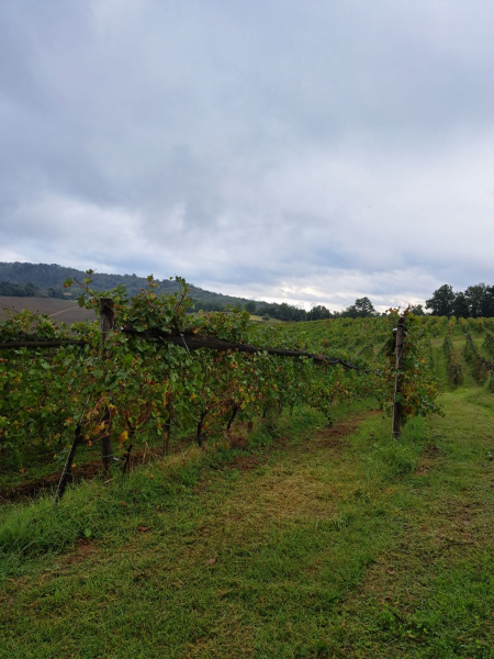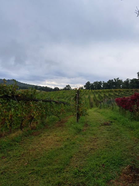 Durante la visita ci siamo soffermati in particolare sui vigneti di pinot nero, vitigno che proprio in queste terre trova una delle sue espressioni più felici. L’Oltrepò Pavese, e in particolare la zona di Casteggio, rappresenta un habitat ideale: il microclima fresco e ventilato consente a questa nobile varietà di esprimersi con eleganza, complessità e carattere. Tuttavia, se da un lato questo vitigno beneficia di condizioni pedoclimatiche eccellenti, dall’altro è oggi chiamato a confrontarsi con le sfide del cambiamento climatico, che porta a un progressivo innalzamento delle temperature.