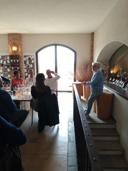 Già avvicinandosi alla tenuta, lo sguardo è catturato dalle dolci colline che si sollevano dalla pianura: le “prime alture”, appunto, che preannunciano un paesaggio vitivinicolo di straordinario fascino e di antica tradizione. È proprio da questa visione che nasce il nome di una cantina relativamente giovane all’interno del panorama oltrepadano, ma che ha saputo velocemente affermarsi con il suo stile e la sua filosofia: Prime Alture. Accolti da Claudio Giorgi, la delegazione di AIS Pavia ha avuto modo di conoscere non solo i vini della tenuta, ma anche lo stile e l’approccio creato dal suo fondatore Roberto Lechiancole.