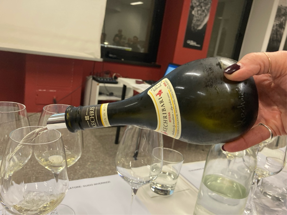 La Retsina è il simbolo della tradizione ellenica. In questa versione di Kechris, la resina – un tempo impiegata per sigillare le anfore – diventa elemento aromatico e identitario.