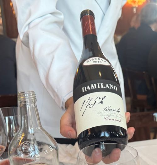 Il Cannubi resta il cuore pulsante della storia Damilano. «È il Grand Cru dei Grand Cru» – scherza Luca Giordana – «il vino che piace a tutti, in ogni annata.» La 2021 conferma l’equilibrio perfetto tra struttura e finezza, potenza e grazia. Nel bicchiere il frutto è nobile, la tessitura elegante, il tannino dolce e vellutato. È il Barolo della classicità più pura, in grado di essere immediatamente seducente, ma anche di promettere longevità. Il Cannubi affronta il tempo con lo sguardo fermo di chi sa di poterlo sfidare, con quella consapevolezza matura e struggente di chi non cederà facilmente. La sua grandezza risiede nella fedeltà alla propria identità, capace però di evolversi senza mai tradirsi. Tra i Barolo, il Cannubi appartiene a una categoria a parte: raffinato, equilibrato, profondamente elegante. Riesce a tradurre con grazia il suolo di calcare e argilla, esprimendo ogni annata con rispetto e misura, senza mai imporsi sul territorio. Ad ogni sorso sembra mormorare la sua unicità, con un finale che resta impresso nella memoria. È una poesia sensoriale: ipnotica, seducente, armoniosa. Un vino che non si limita a piacere, ma che consola, avvolge e fa bene all’anima. Elegante.
