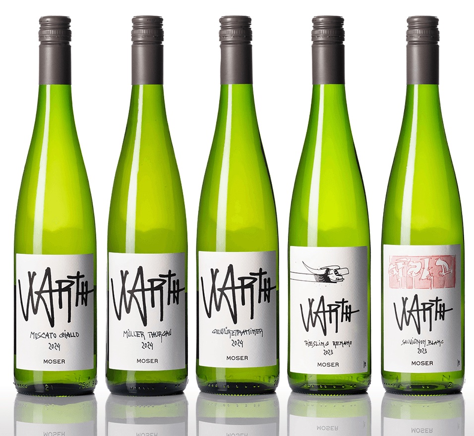 I cinque bianchi aromatici (e semi-aromatici, in questa rubrica li includiamo tutti) della linea Warth, tutti imbottigliati con tappo a vite (il migliore che oggi ci sia in commercio, specie per queste tipologie), formano una ghirlanda di ascendente intensità aromatica.