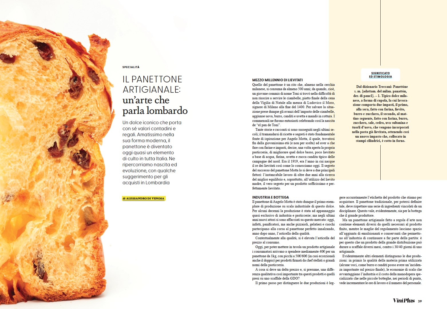 Il panettone di Angelo Motta è stato dunque il primo esemplare di produzione su scala industriale di questo dolce. Per alcuni decenni la produzione è stata ad appannaggio quasi esclusivo di industria e pasticcerie; ma negli ultimi anni nuovi attori si sono affacciati su questo mercato: oggi, infatti, panificatori, ma anche pizzaioli, gelatieri e cuochi partecipano alla corsa al panettone perfetto innalzando, anno dopo anno, l’asticella della qualità. Contestualmente alla qualità, si è elevata l’asticella del prezzo al consumo. Oggi, per poter mettere in tavola un prodotto artigianale i consumatori arrivano a spendere mediamente 40€ per un panettone da 1kg, con picchi a 50€/60€ (in casi eccezionali anche il doppio) per prodotti firmati da chef stellati o grandi nomi della pasticceria. A cosa si deve un delta prezzo e, si presume, una differenza qualitativa così importante tra questi prodotti e quelli presi su uno scaffale della GDO? Il primo passo per distinguere le due produzioni è leggere accuratamente l’etichetta del prodotto che stiamo per acquistare. Il panettone tradizionale, per potersi definire tale, deve rispettare una serie di ingredienti vincolati da un disciplinare. Questo vale, evidentemente, sia per la bottega che il grande produttore. Ma un panettone artigianale fatto a regola d’arte non contiene elementi diversi da quelli necessari al prodotto finito, mentre le maglie del regolamento lasciano spazio all’aggiunta di emulsionanti e conservanti che permettono all’industria di continuare a far parte della partita: è per questo che un prodotto della grande distribuzione può durare a scaffale diversi mesi, contro i 30/40 giorni di uno artigianale. Evidentemente altri elementi distinguono le due produzioni: in primis la qualità della materia prima utilizzata (alcune voci, come burro e canditi posso avere un’incidenza importante sul prezzo finale), le economie di scala che avvantaggiano l’industria e il costo della manodopera specializzata che nelle piccole botteghe, nei periodi di punta, vede incrementare le ore di lavoro e il numero del personale.